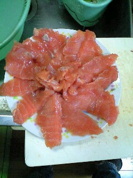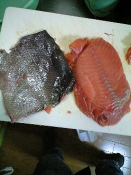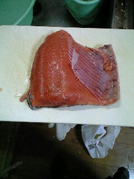 ...って言ってもどうすっかなぁ、と悩んでいる間も研究室の冷凍庫で眠り続ける鮭の半身