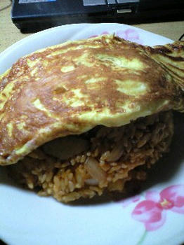 フライパンに入れたら軽く混ぜ、外側がある程度固まったら、両側を中心に持ってきます